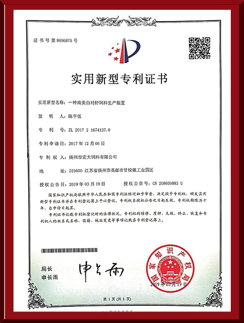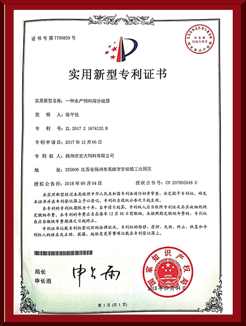 揚州市宏大飼料有限公司 揚州市宏大飼料有限公司是一家集科研與生產(chǎn)為一體的大型民營企業(yè),座落在魚米之鄉(xiāng)高郵東郊,傍依郵興公路、澄子河,水陸交通便捷,于2002年建成投產(chǎn),占地面積60畝,固定投資1.5億元?,F(xiàn)有7條生產(chǎn)線,其中時產(chǎn)15噸高檔水產(chǎn)膨化生產(chǎn)線2條,均采用國內(nèi)先進的真空后噴涂技術和低溫烘干技術(飼料內(nèi)的各種營養(yǎng)不受破損)、臺灣宜大高檔蝦料生產(chǎn)線2條和魚飼料生產(chǎn)線3條。